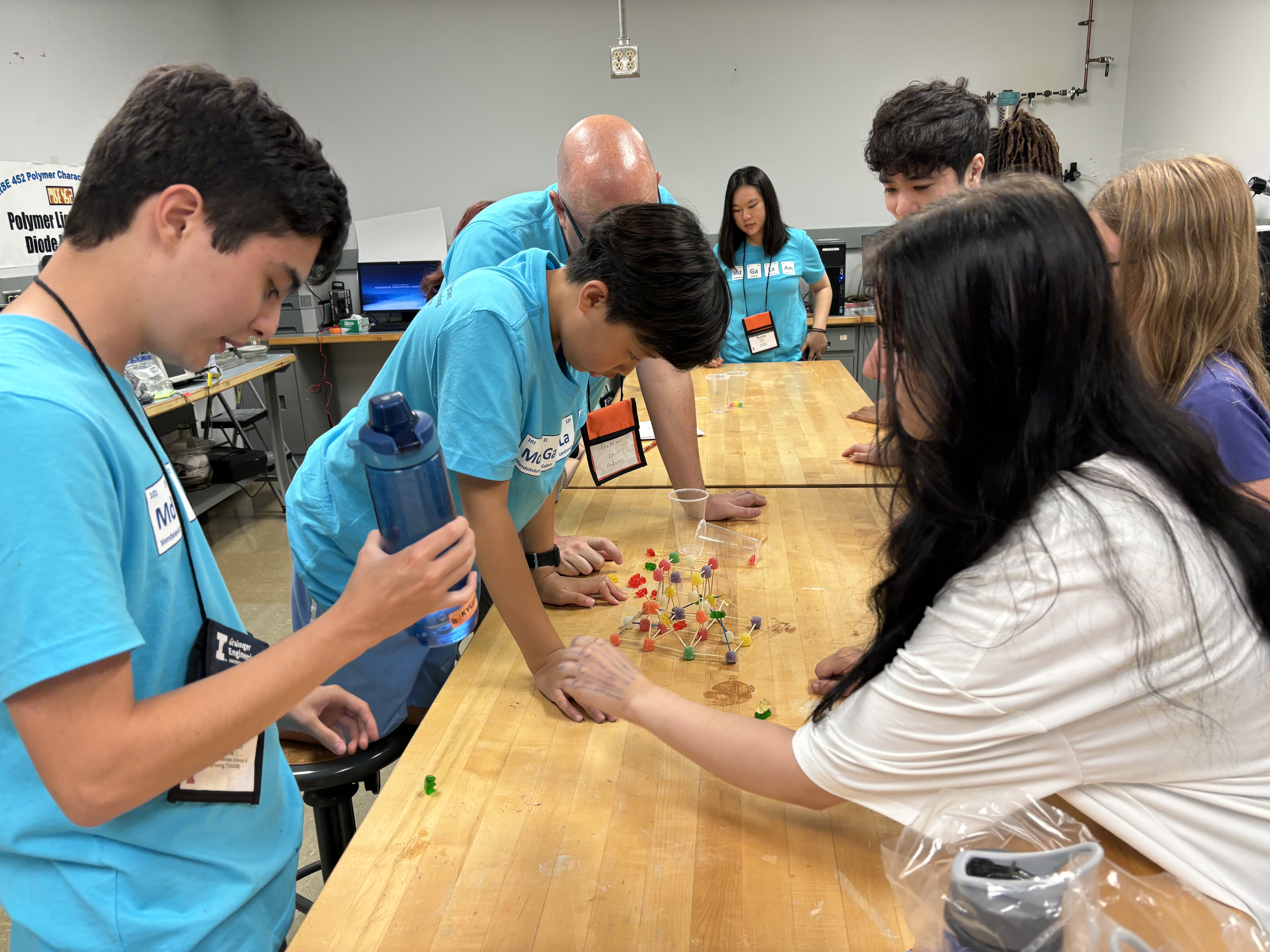 Multiple members of the materials department faculty were involved in running the camp in 2024, including Associate Professor Chris Evans and Assistant Professors Antonia Statt, Hua Wang and Marie Charpagne. Each person spent time with the students and led at least one activity that helped students learn more about how materials work.